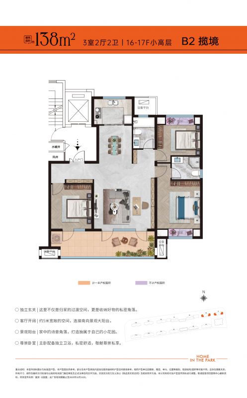 B2戶型 3室2廳2衛 建面:138m2