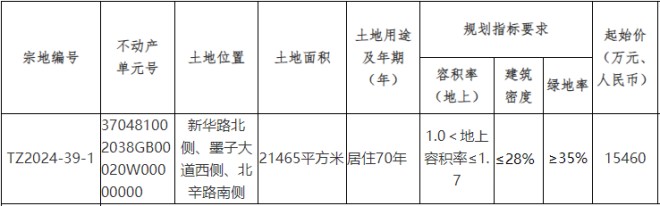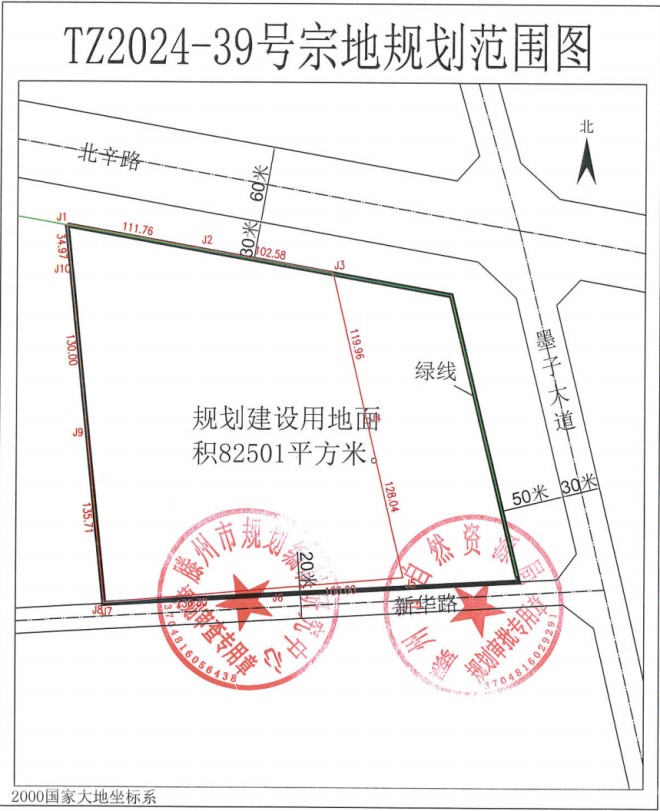TZ2024-39-1號宗地,位于新華路北側、墨子大道西側、北辛路南側,土地面積21465平方米,土地用途及年期為居住70年。